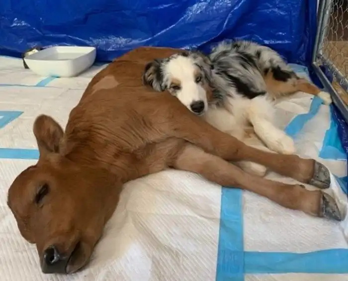 14. Наша собака и недавно спасенный теленок внезапно сблизились