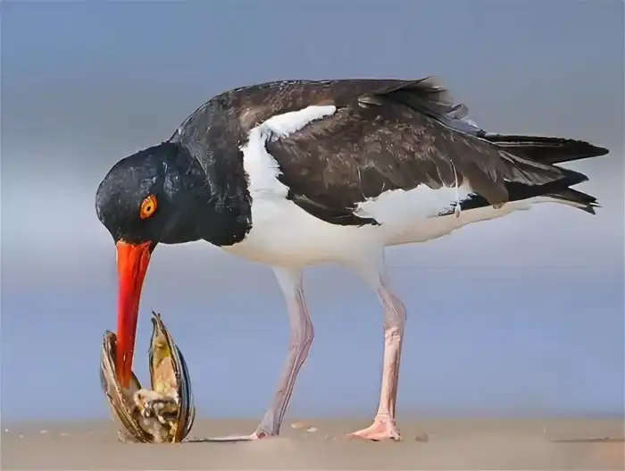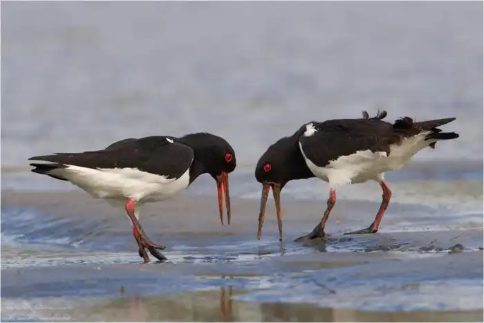 Основная пища птиц — двустворчатые моллюски. Своим клювом-шилом птицы без труда раскрывают створки животных.