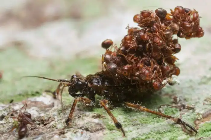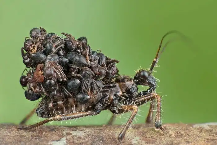 Клоп-хищнец: Коллекционер муравьиных душ. Зачем маньяк микромира таскает на себе гору из мертвецов?
