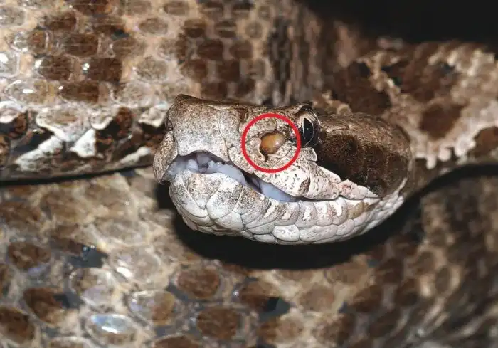 Та самая термочувствительная ямочка, которая помогает рептилии находить свою жертву в кромешной темноте.