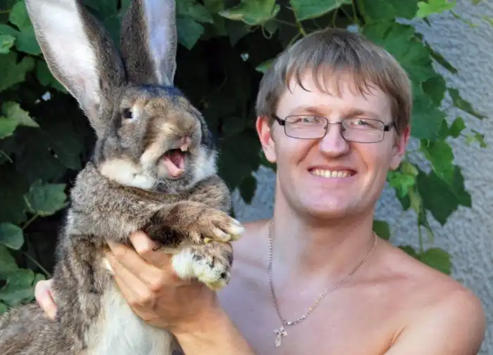 Если смотреть издалека, то в кролике нет ничего странного. Обычные уши торчат из обычной головы, которая покоится на самом обычном туловище. Только вот стоит подойти поближе, и в голове возникают смутные подозрения. Ну не может кролик весить 12 кило и быть более 70 сантиметров длиной!
