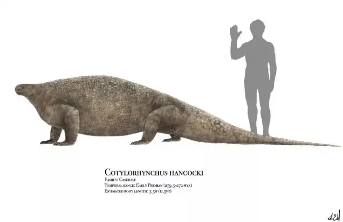 Но несмотря на это, животина стала самой большой зверюгой своего периода! Не приди за котилоринхом старуха с косой в лице Пермского вымирания — кто знает, какие существа топтали бы землю сегодня.