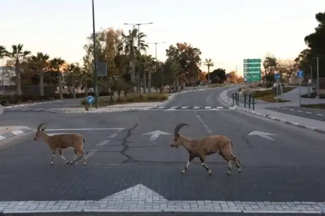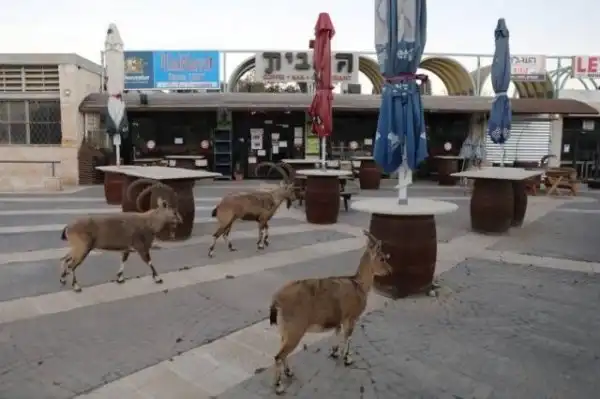 Несколько фоток из славного израильского городка Мицпе-Рамон. Пока народ из за карантина сидит дома, городок постепенно оккупируют горные козлы.