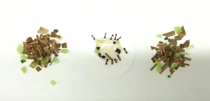 Сначала биологи предположили, что насекомые просто «запрограммированы» брать распространённые в их среде обитания материалы, но дальнейшие тесты опровергли эту гипотезу. Оказалось, что каждый отдельно взятый муравей использует все доступные материалы, чтобы определить, какой из них впитывает влагу лучше. При доступе к вате или губке, муравьи переходили исключительно на них, бросая хорошо знакомые им листики и веточки.