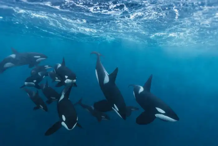 В среднем стаи косаток включают в себя от 5 до 15 особей. Вместе они занимаются охотой и помогают друг другу выращивать детёнышей.
