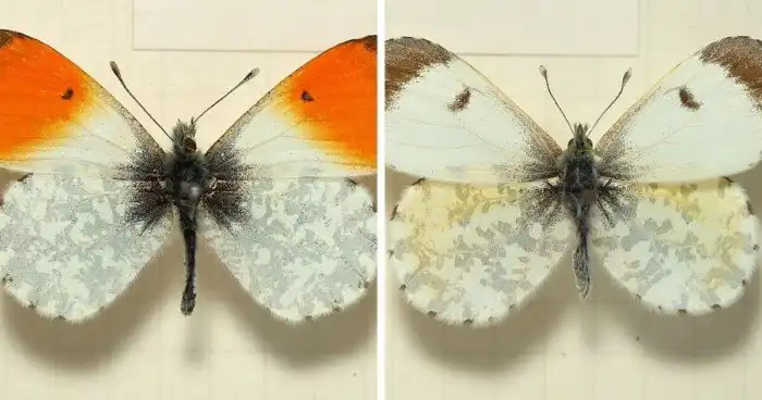 Основное отличие: на крыльях самцов присутствует оранжевое поле, которого нет у самок.