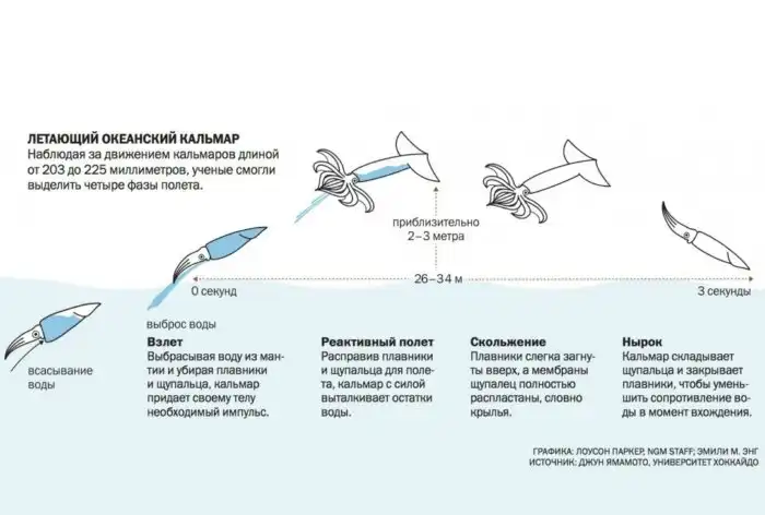 Летающие кальмары: Первым делом самолёты. Моллюски научились летать в стиле «клизмы»