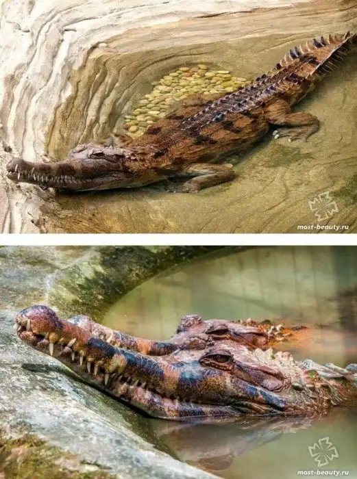 Единственный представитель удивительного рода гавиалов обитает в водоёмах и реках Индии и Непала. Довольно редкий и, по мнению most-beauty.ru, уникальный вид. Несмотря на грозный вид, они не опасны для человека.
