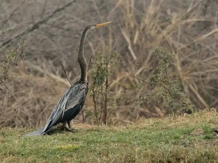 Со стороны змеешейка похожа на цаплю, только с очень короткими ножками.