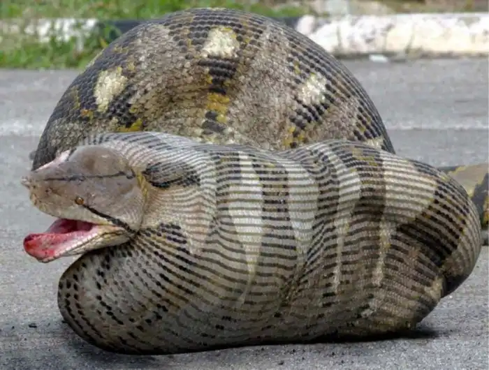 Даже если ты дорос до гигантских размеров, далеко не факт, что тебя не съедят. Вот, например, голодные жители Борнео решили приготовить на ужин этого огромного питона.