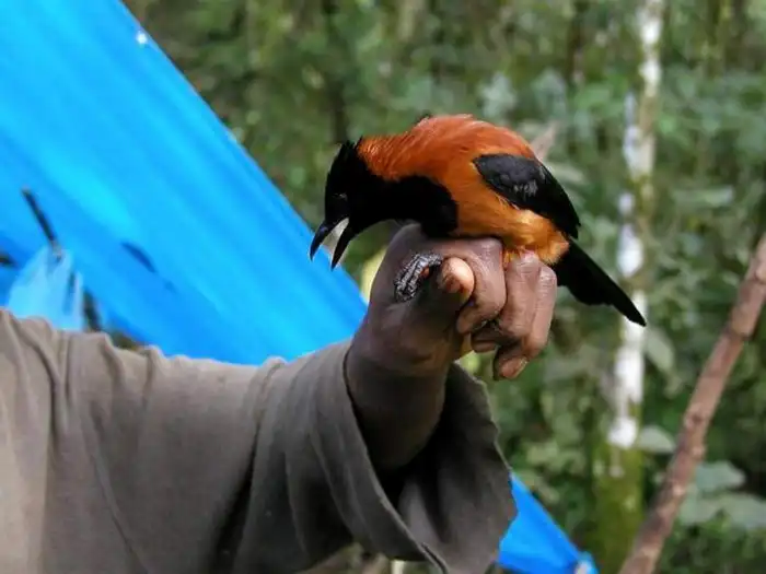 Дроздовые мухоловки — это вообще-то 8 видов птиц, обитающих на территории Индонезии и Новой Гвинеи. Забравшись повыше в горы (до 2 тысяч метров) и подальше в джунгли, питоху вдали от цивилизации живут прямо-таки припеваючи. И, вроде бы, птичка как птичка. Мелкое пернатое размером с дрозда (не зря ж дроздовая-то) питается насекомыми (не зря ж мухоловка-то), фруктами и мелкими позвоночными. Даже оперение у неё не абы какое красочное — джунгли видели птиц и поярче. Зато какой крутой у неё яд!