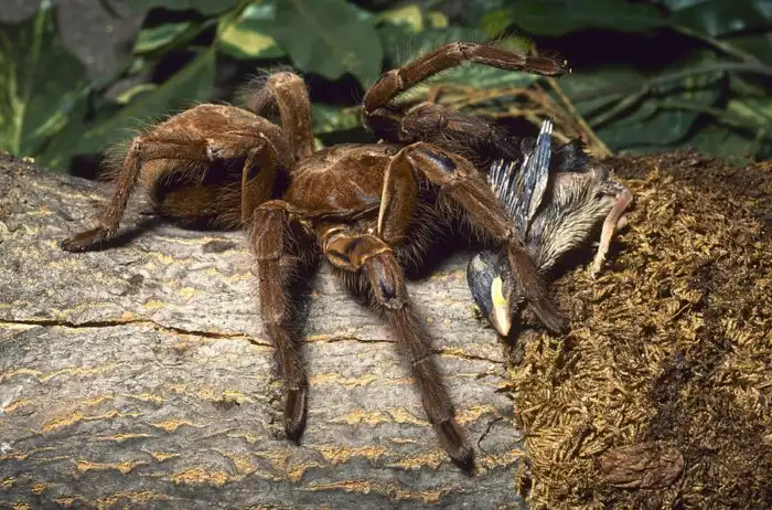 Вопреки названию, птицееды питаются птичками нечасто — они вообще мясо теплокровных не очень хорошо переваривают. Основу их рациона составляют насекомые, мелкие земноводные и... пауки.