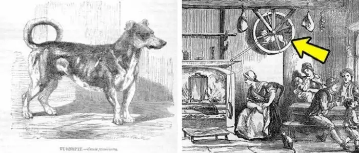 Вымершая вертельная собака передаёт привет. Этот пёс работал живым двигателем: он бегал в колесе, вращая вертел.