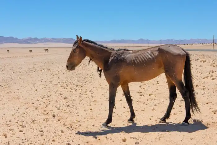 Тогда как все нормальные кони приспособлены к жизни в полных зелени степях, эти иррациональные животные живут на окраине пустыни Намиб. Условия для жизни там по-настоящему кошмарны: пастбищ и воды нет от слова совсем. Любая ошибка здесь карается смертью.