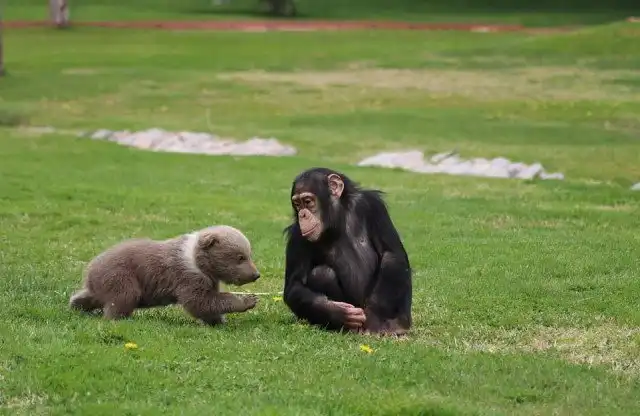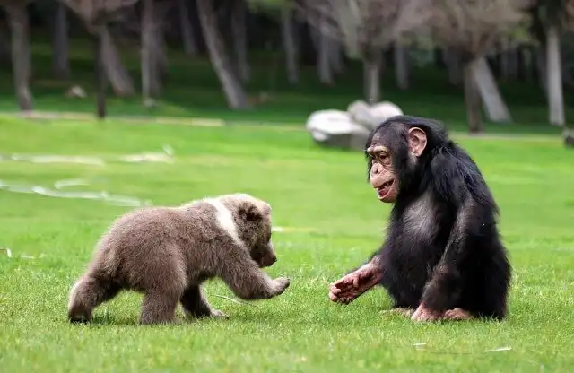 29-дневный медвежонок подружился с шимпанзе в зоопарке Турции. Молодой детеныш медведя по кличке Бончук (Boncuk) был изъят и доставлен в зоопарк Газиантепа после того, как его нелегально перевезли в страну. Очаровательные изображения показывают медвежонка в объятиях шимпанзе Кэна (Can). Другие запечатлели маловероятных друзей в дикой природе, играющих вместе в зоопарке.