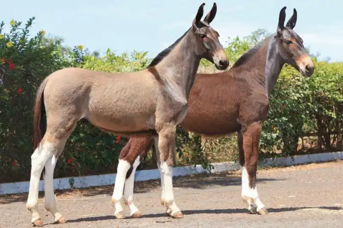 Даже внешний вид мулов — это половинка от одного родителя и половника от другого. Голова с длинными ушами и ослиный хвост скомбинировались с лошадиным стройным туловищем. Главное — не перепутать родителей и не скрестить жеребца с ослицей. Иначе получится не мул, а лошак. Он больше похож на осла и чуть хуже по своим плюшкам в качестве работяги.