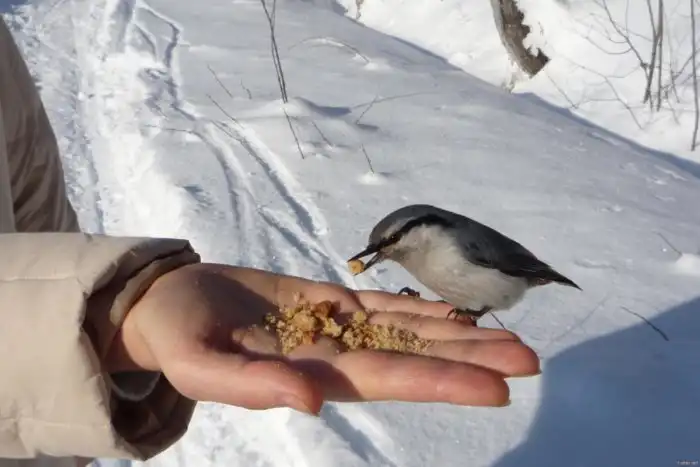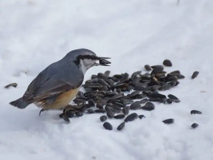 Следовательно, белковый рацион приходится менять на растительный: семена, шишки, жёлуди и предложенные семки поползень склюет с удовольствием. Или наберет в тонкий клюв сколько сможет и утащит в схрон — там может храниться до 1.5 кг съестного добра. Зима терпит запасливых и губит недальновидных.