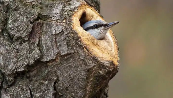 Но с приходом весны поползни задумываются о тренерстве нового поколения. Как и свое призвание птички находят себе пару раз и на всю жизнь. Зал, он же гнездо, он же дупло, обустраивается, не отходя от кассы, на тех же самых деревьях. Любую полость на стволе птицы обустроят под себя: слишком широкие щели будут замазаны глиной, а пол будет щедро выстлан подстилкой.
