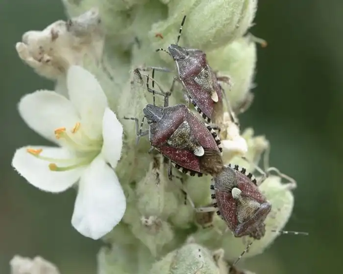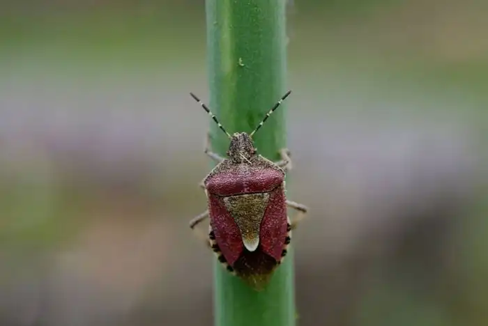 В детстве мы незатейливо называли этих ребят клопами-вонючками, а официально они именуются щитниками — из-за характерной брони, прикрывающей тушку. Семейство клопов-щитников известно еще с кайнозоя. Сейчас оно просто огромное: насчитывает почти 5000 видов, причем в Европе тусует только 228, включая несколько вредителей сельского хозяйства. Ягодного клопа тоже к ним относят, хотя он не сильно много бедокурит. Скорее, мелко пакостит.