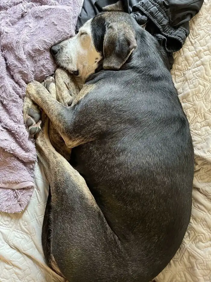 "Собака, которую я взял из приюта, никогда раньше не жила в доме. Это ее первый сладкий сон на кроватке"