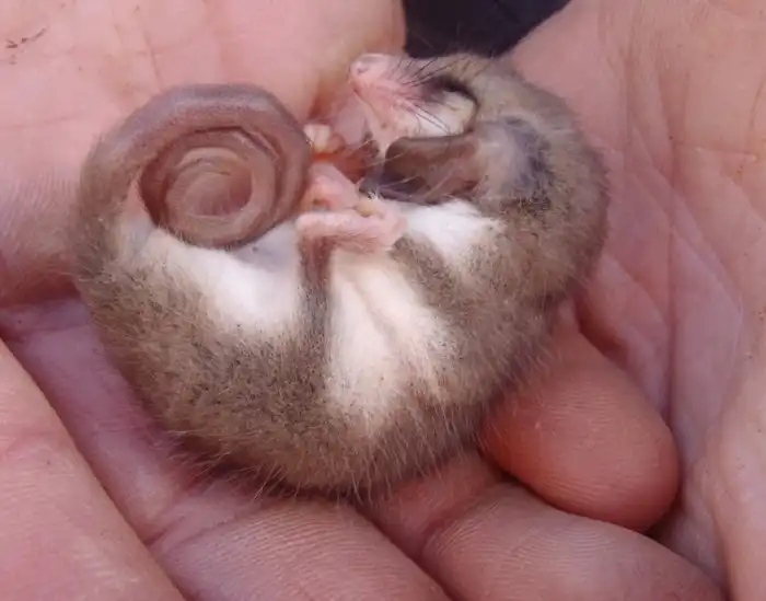 В небольшом, но дружном семействе карликовых поссумов всего два рода и пять видов. Наш дружочек, тасманийский кускус — самый мелкий из них. Он вообще одно из самых мелких сумчатых животных: максимум 10 граммов живого веса, 7 см от кончика носа до жопенки + хвост.