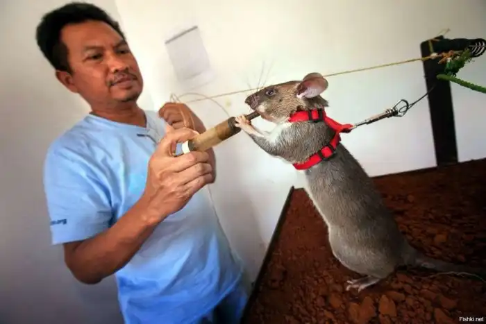 Гамбийская крыса: Огромные крысы-ищейки. Используются для поиска боевых мин и туберкулеза. Справляются лучше собак!