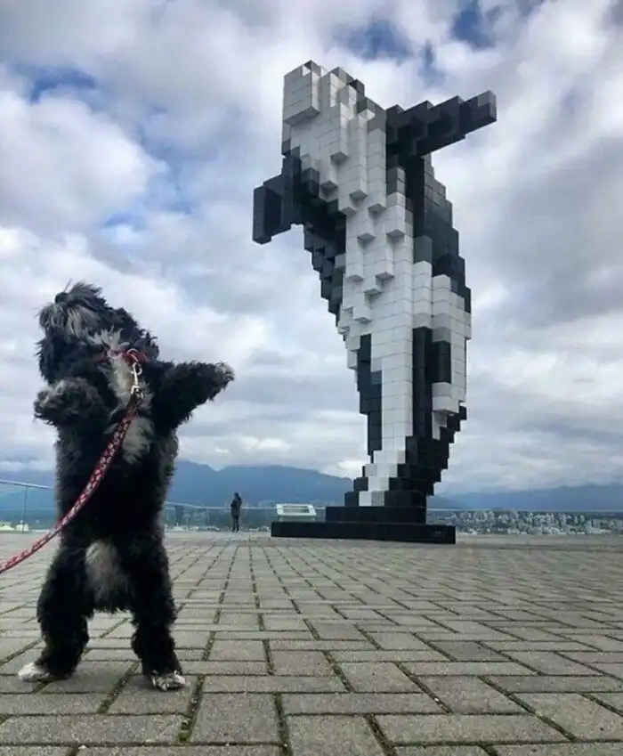 Эта забавная собачка решила повторить памятник, получилось практически идентично