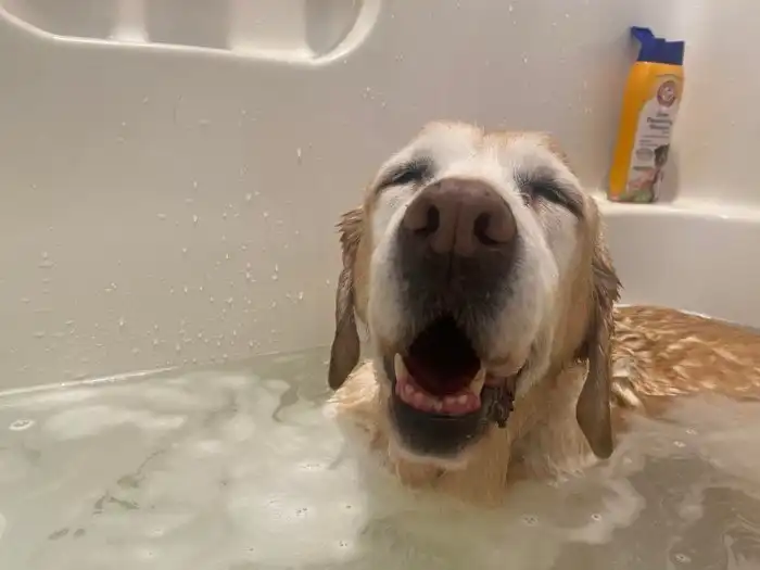 Если питомец с удовольствием плещется в ванной, то его хозяину очень крупно повезло! Правда потом ему придётся приложить немало усилий, чтобы унести своего любимца из ванной комнаты, а это всё равно, что уводить разыгравшегося ребёнка с детской площадки.Реакция моей собаки на душ