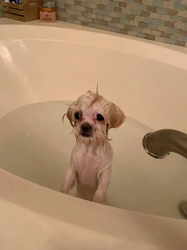 В списке ухода за питомцем, помимо кормления, прогулок и похода к ветеринару, есть ещё один важный пункт — ванные процедуры. И к ним у всех питомцев разное отношение: кто-то готов с разбега нырять в ванну с водой, а кого-то приходится заманивать туда самыми изощрёнными методами. Но итог всегда один: грязным не останется никто!Вы думаете это пена? А нет, это шёрстка моего шпица!