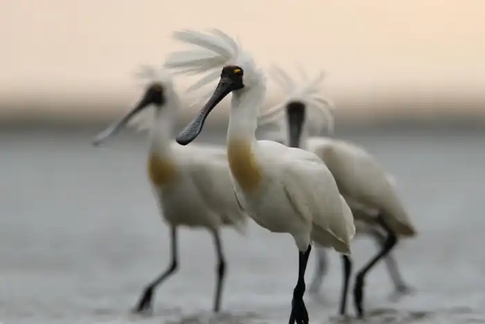 И, как и прочие столовые приборы, колпицы терпеть не могут одиночества. Они постоянно собираются в компашки разных масштабов: от узкого круга друзей до армии пернатых любителей движа на болотах. Иногда, когда нет сородичей, колпицы примыкают к другим болотным птицам. Семья же, как-никак.