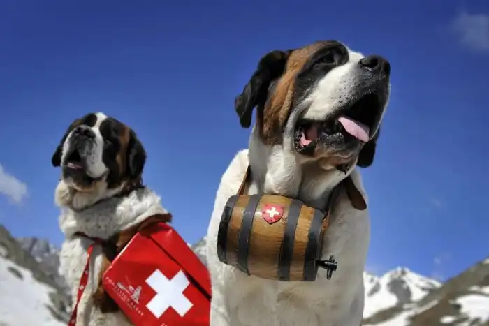 Сенбернаров до сих пор учат находить людей под завалами снега.