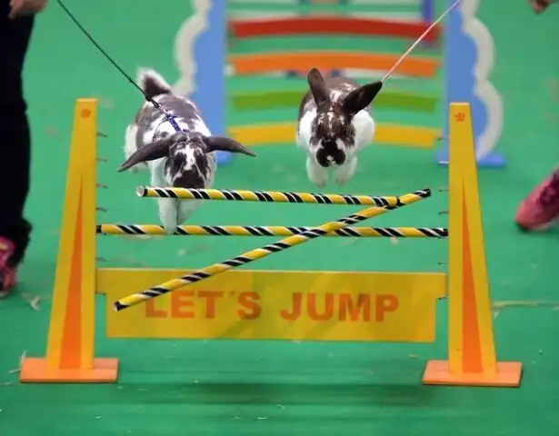 В конкуре всадник, как известно, сидит на лошади в седле. «Скаковые кролики» бегут рядом со своим «тренером» (хозяином) для длинном поводке со шлейкой. Пушистая милота оказалась, представьте себе, очень даже «спортивной»! Мировой рекорд прыжка в высоту – 1 метр 6 сантиметров – был установлен в 2019 году кроликом по имени Добби из Швеции (хозяйка – Юлия Самсон). Этому же кролику принадлежит мировой рекорд прыжка в длину – 3 метра 1 сантиметр! Вполне серьёзно.