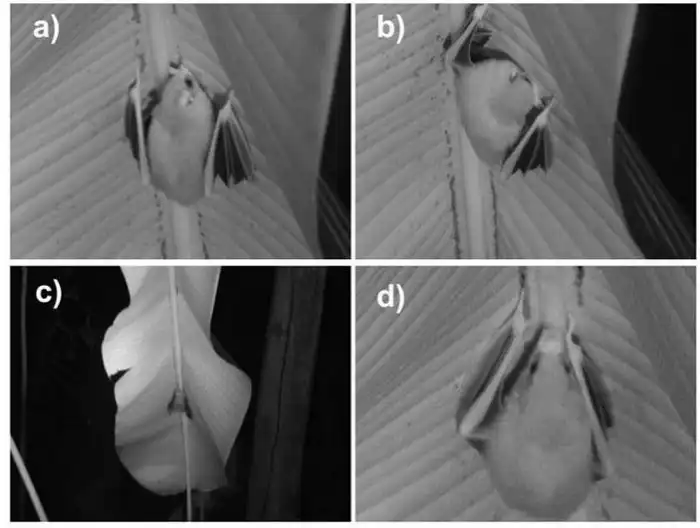 Няшные летучие мыши и близко не подходят к сырым пещерам. Небольшой компанией они устраивают палаточный лагерь, прямо как мы на шашлыках в лесу. Бригада из 6-8 летунов находит большой пышный лист и подгрызают его вдоль центральной жилки. Лопасти листа загибаются книзу, и получается эдакая палатка. Только без пола.