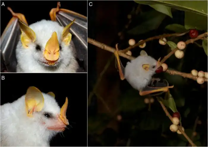 Белый листонос: Ломают все стереотипы о летучих мышах. Милые, белоснежные, спят в листиках и едят только фрукты