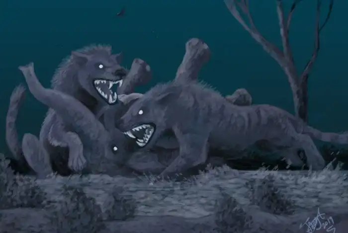 Животиной с большим зубальником оказалась симбакубва. В переводе с суахили — большой лев из Африки. Только большим кошкам эта тварь не родня. А вот к гиенодонтам — топовой группе хищников палеоцена и миоцена — зверюга имела отношение самое непосредственное. В промежутке между 50 и 23 миллионами лет они были одними из центральных мясоедов Евразии.