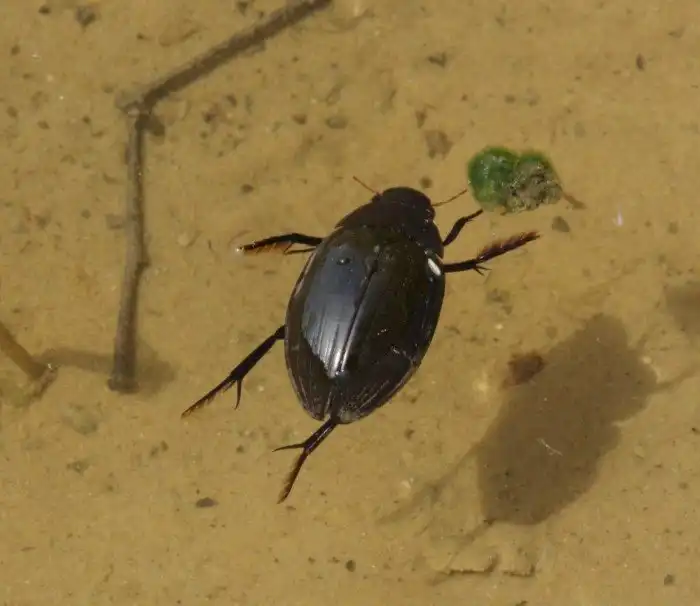 Только вот полюбоваться животиной непросто. Днём наш друг шарится по дну в поисках маленьких членистоногих, водорослей и падали, а ночью переселяется в другой заросший водоём при помощи довольно неплохих лётных навыков. Аэродинамичный корпус помогает и в плавании и в полётах. И всё же, стоит признать, что путешествия по воздуху даются жуку лучше.