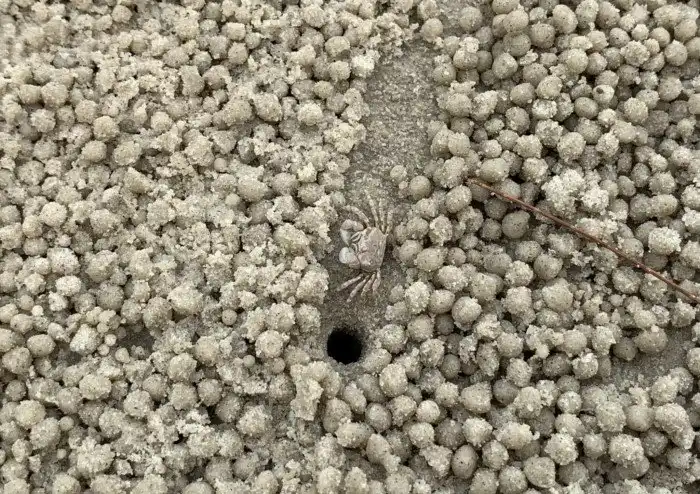 Краб-барботёр: Ест песок и скатывает отходы в уникальные узоры из шариков. Странное поведение привлекло даже математиков