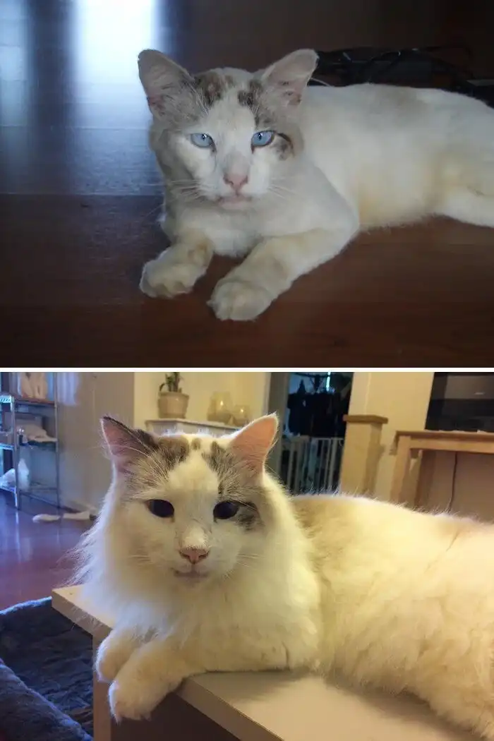 Спасибо, люди: 20+ трогательных фото кошек до после спасения