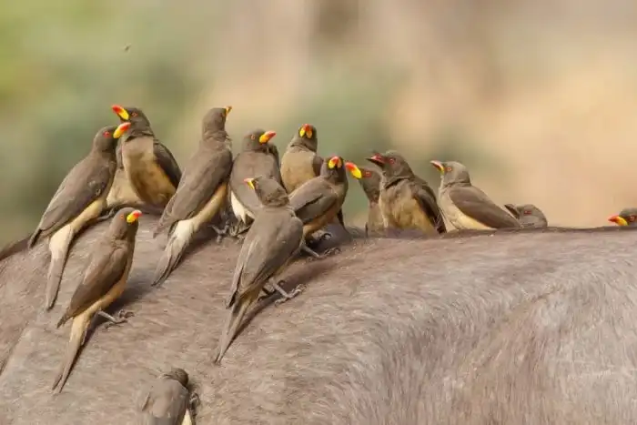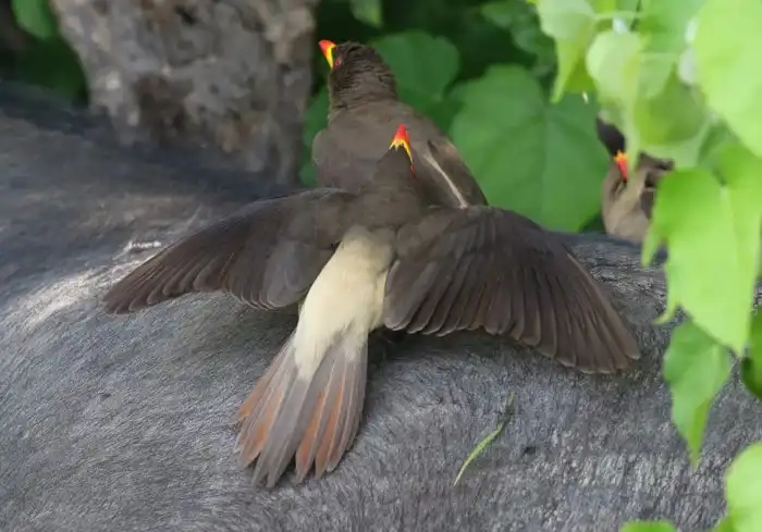 То, что птицы неравнодушны к буйволам, отражено в их втором названии — буйволовые скворцы.