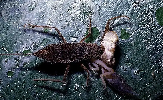 Вообще, наш герой отрабатывает своё название на слабую троечку. Скорпионом он не является: по родословной это букашка, а точнее — клоп. Да и водным его можно назвать с большой натяжкой. На воде «скорпион» держится с божьей помощью: никаких приспособлений для плавания и задержки дыхания у него нет. Как жаль, что кошмарить обитателей мутных водоёмов это абсолютно не мешает!