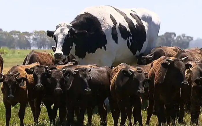 Это не коровки такие маленькие, а бык такой гигантский. Его зову Никерс, он живёт в Австралии и является представителем породы голштин. А ещё это один из крупнейших домашних быков в мире. Рост великана составляет 1,94 метра!