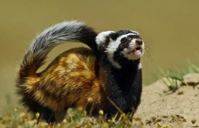 Перевязка — близкая родственница хорьков и куниц. Большинство представителей её семейства — маленькие элегантные убийцы. Но наша героиня походит на очаровательную чебурашку в пёстрой леопардовой шубе. Только посмотрите на эти ушки, эти глазки, эту мордочку! Кстати, из-за физиономии животину перевязкой и назвали. Белая полоса, опоясывающая моську, кому-то напомнила бинт.