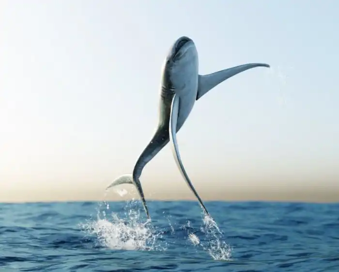 Скелет доисторической изобретательницы обнаружили недавно, в 2012 году, в мексиканской каменоломне. Местные палеонтологи быстренько взяли его в оборот, но окончательно описали лишь к началу 2021 года. В процессе исследования окаменевших останков они выяснили, что эта животина жила примерно 92 миллиона лет назад. Её 2 метровое торпедообразное тулово не отличалось от организмов других акул ничем, кроме ЗАГНУТЫХ ГРУДНЫХ ПЛАВНИКОВ РАЗМАХОМ В 2 МЕТРА!