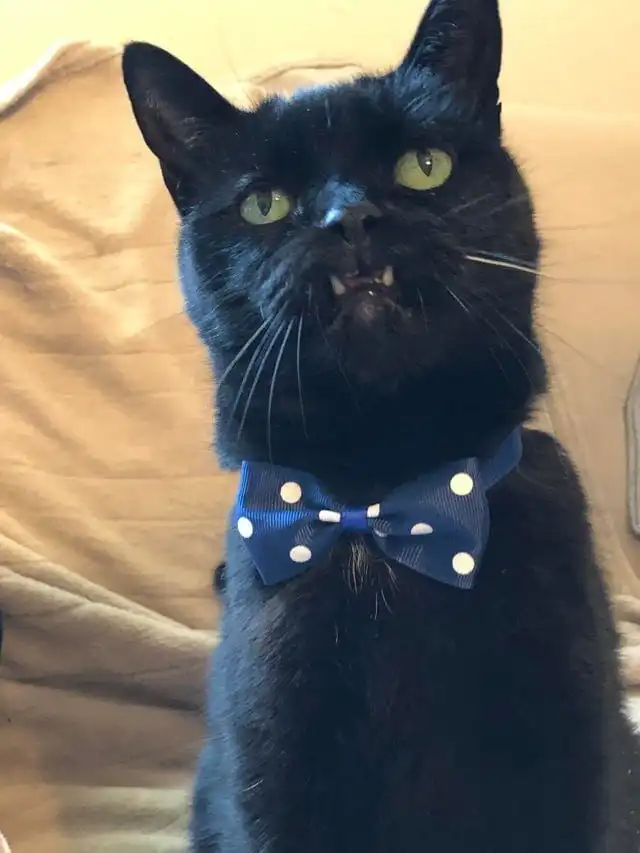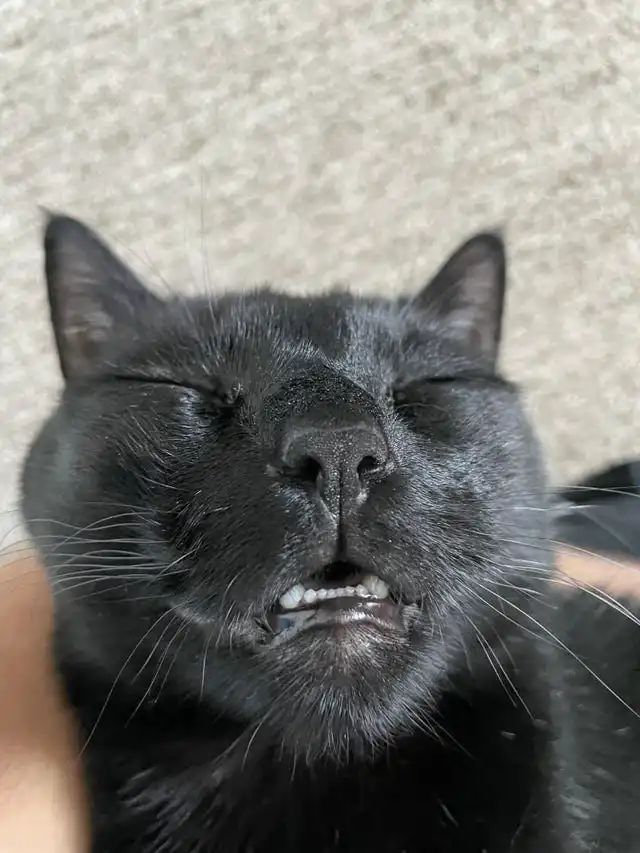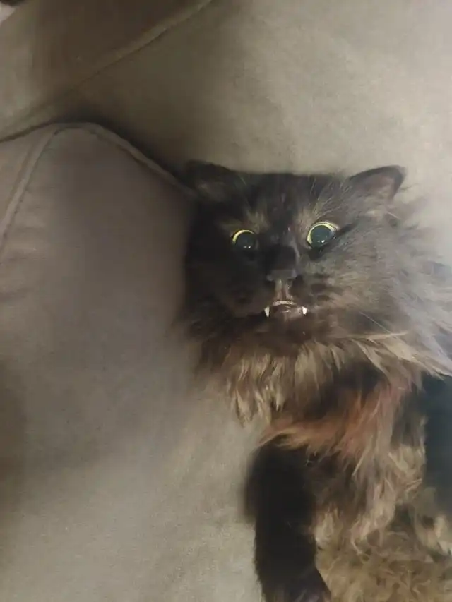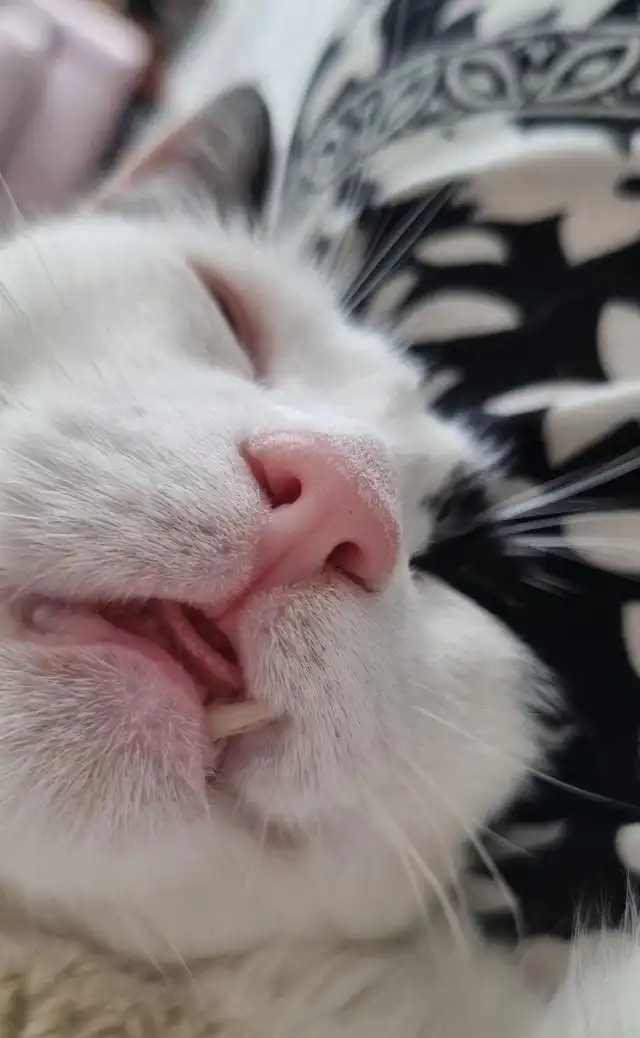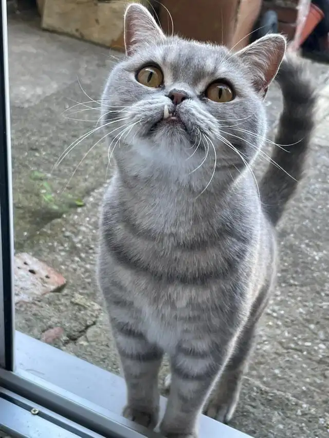Соседская кошка пришла к нам, чтобы похвастаться своим клыком
