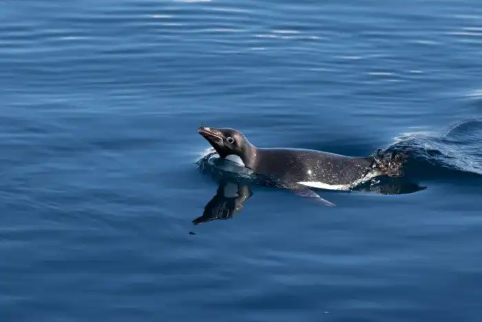 Но это не значит что птица настолько любит морозную свежесть. Наиболее холодные месяцы южная птица переживает в море, проводя дни и ночи за охотой на рыбу, криль и многочисленных медуз. Крейсерская скорость подводной птицы невысока, всего 8 километров в час, но на коротких дистанциях она может увеличиваться вдвое.