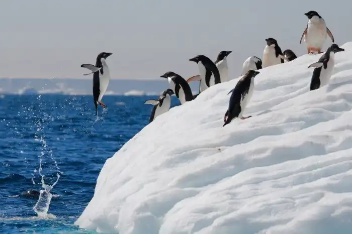 Такое ускорение помогает и в охоте, и в спасении покрытой водонепроницаемыми перьями тушки. Заметив косатку или морского леопарда, пингвин хорошенько разгоняется и выскакивает на ближайший айсберг. Там его уже не достать, хищником приходится уйти в поисках более лёгкой добычи.