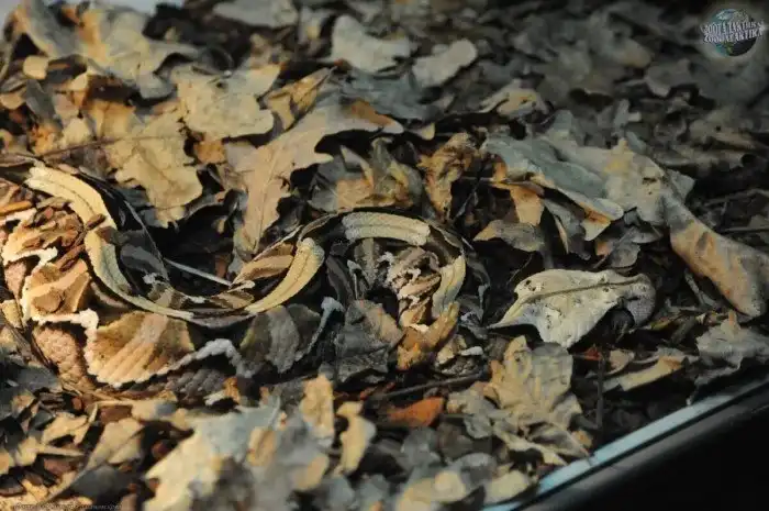 Когда рядом нет чрезмерно настырных гомосапиенсов, габонская рептилия использует яд по прямому назначению: травит им мышек, лягушек, диких котов и карликовых оленей. Существа не любят активную охоту, они прячутся в кучках пожухлой листвы и ждут, пока провизия не подойдёт на расстояние броска. А огромная, даже по змеиным меркам, черепушка позволяет ей не париться по поводу размеров добычи.