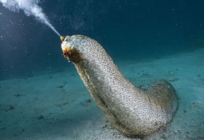 То ли дело морские огурцы, эти странные твари не только создают себе новые потроха, они добровольно отказываются от своих внутренних органов. Если хищник начинает интересоваться псевдоовощем, тот презрительно выкашливает свой пищеварительный тракт во враждебно настроенную морду. Глубоко шокированный мясоед осознаёт, что жрать нечего и удаляется искать следующую жертву. А вот огурчик остаётся огурцом и выращивает себе очередной кишечник за пару недель.