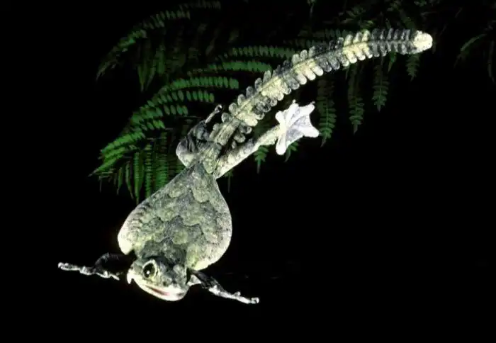 Перепонки, кстати, ящерка использует по назначению — для плавания. По воздуху.