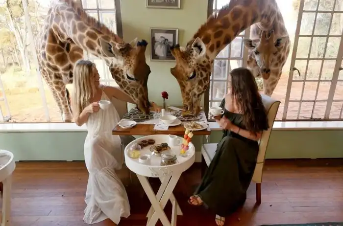 Как по мне, лучше есть не жирафа, а вместе с ним. В Африке есть отель, где обитают долговязые. К некоторым они присоединяются на обед.